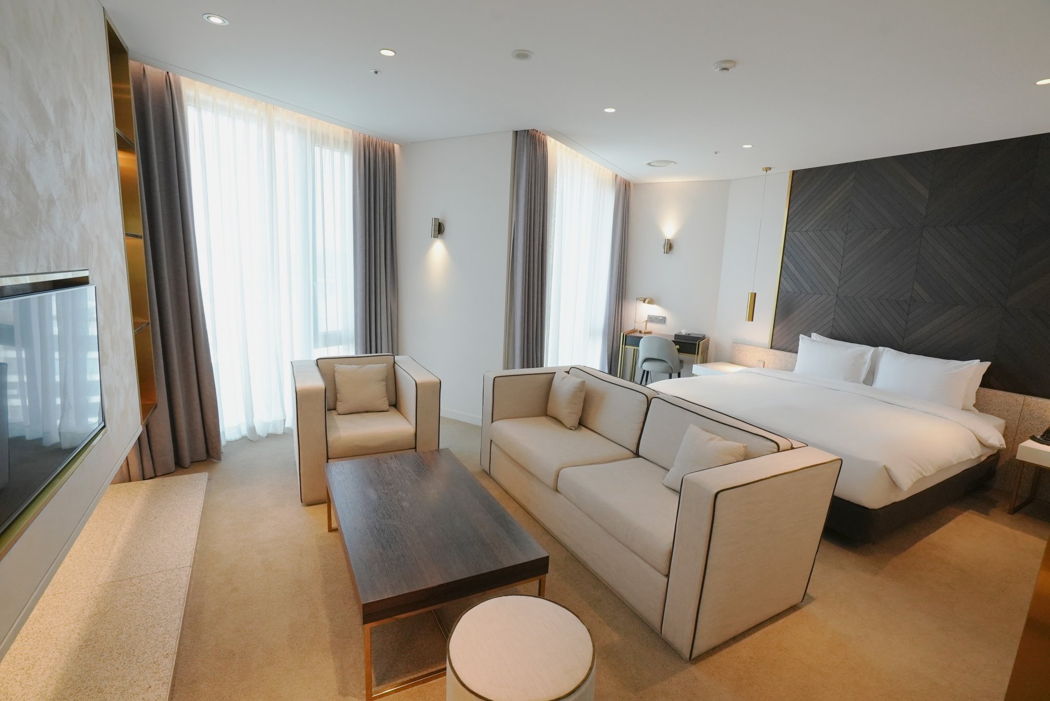 마리나뷰를 모두 즐길 수 있는 개방감 높은 객실로 절제된 세련미가 돋보이는 객실입니다.