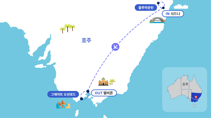 인천-기내(1)-시드니(2)-멜버른(1)-기내(1)-인천
